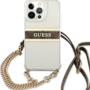 Guess 4G Back Cover Σιλικόνης με Λουράκι Transparent / Brown Strap Gold Chain iPhone 13 Pro